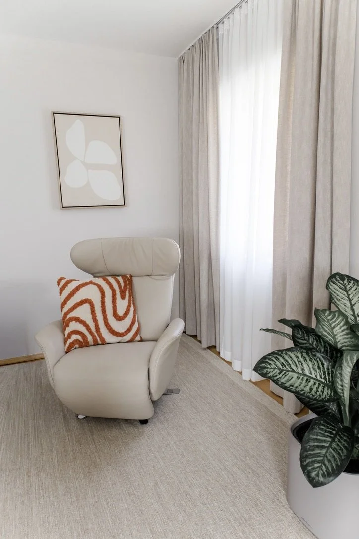 “Ich bin begeistert von der Zusammenarbeit mit Doris. Sie hat meine Vorstellungen perfekt erfasst und in ein harmonisches, durchdachtes Gesamtkonzept für meine Psychotherapie-Praxis umgesetzt. Die Abstimmung war unkompliziert, zügig und professionell. Auch die Koordination der Handwerker lief reibungslos, ich konnte mich zu 100 % verlassen. Das Ergebnis ist stimmig und rundum gelungen!”